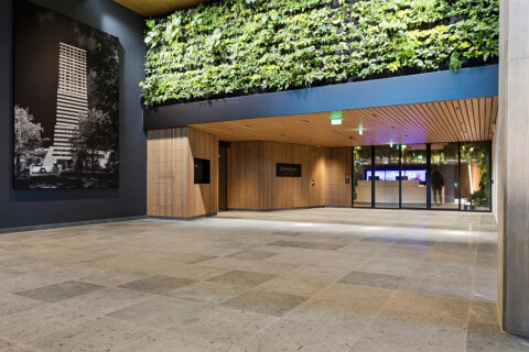 Je komt het complex binnen in een imposante entree, met brievenbussen, "bring me home" boxen waar je pakket kan worden afgeleverd mocht je niet thuis zijn en toegang tot het trappenhuis en liften. De hal straalt een ruwe stijl uit door de betonnen pilaren welke refereren aan het voormalige studentencomplex "De Bunker".