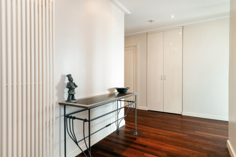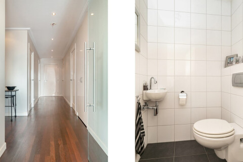 Zeer representatieve centrale ontvangsthal met videofoon installatie, brievenbussen, trappenhuis, lift en afsluitbare toegang tot het parkeerniveau en bergingen. De inpandige parkeerplaats is te bereiken via een op afstand bedienbare toegangshek.