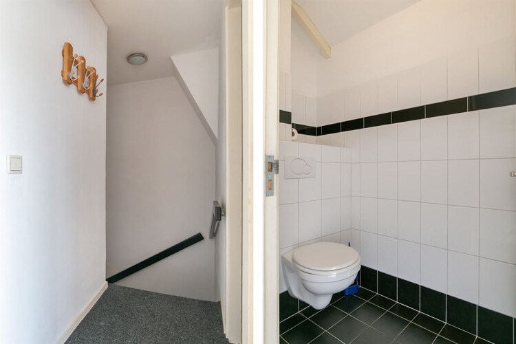 Via trappen toegang tot de 3e verdieping. Op de overloop is er toegang tot een grotendeels betegelde ruime moderne toiletruimte met wandcloset.