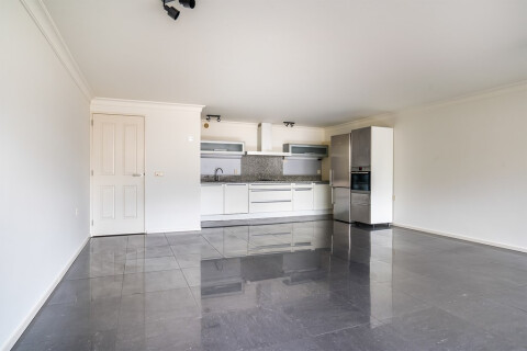 De woon- eetkamer geniet een prettige lichtinval door de grote raampartijen. Half open keuken met keukeninrichting in hoekopstelling voorzien van een granieten aanrechtblad met spoelbak, afzuigkap, combi-oven, vaatwasmachine, en diverse laden en kasten.