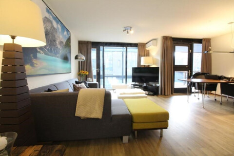 Het royale appartement is op de eerste etage gelegen, en beschikt over voldoende raampartijen die zorgen voor veel lichtinval. De ruime woonkamer biedt toegang tot de nieuwe keuken (2019) en het balkon. De keuken is voorzien van een koelkast, magnetron, kookplaat met afzuigkap en veel boven en onderkasten.