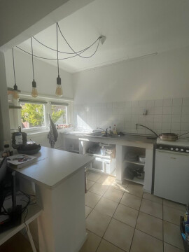 Op de 1e etage bevindt zich de fijne lichte woonkamer met openslaande deuren naar het zonnige balkon, waar u kunt genieten van frisse lucht en een vleugje buitenleven. De woning heeft een open basis keuken is voorzien van een koelkast, elektrische kookplaat en afzuigkap.