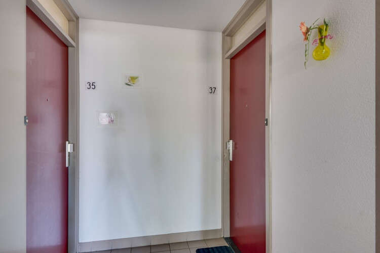 Gemeenschappelijke entree met bellentableau en brievenbussen. Via het trappenhuis zijn de verdiepingen te bereiken. De eigen berging is aan de achterzijde van het complex gelegen.