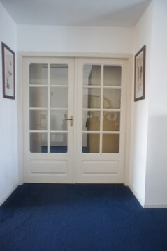 Via de openslaande deuren bereik je de zeer ruime woonkamer voorzien van een nieuwe laminaatvloer.