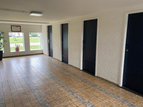 Centrale entree naast de voordeur voorzieningen voor de brievenbussen, bellentableau en intercominstallatie. Hal met toegang tot de individuele bergingen (voorzien van elektra) en trapopgang tot de appartementen.