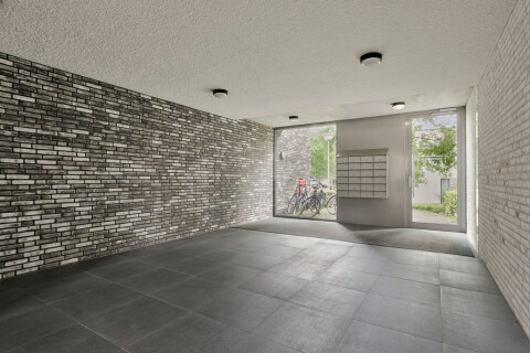 Ingang met brievenbussen en videofooninstallatie. Toegang tot de lift en het trappenhuis. De begane grond is verder voorzien van een eigen afsluitbare berging en gedeelde fietsenberging.