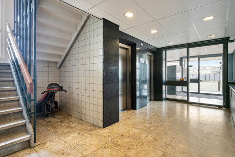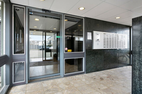 Gemeenschappelijke entree v.v. brievenbussen, bellentableau en toegang tot de eigen berging. Tevens tref je hier de lift en het trappenhuis die je naar de verschillende woonlagen brengt.