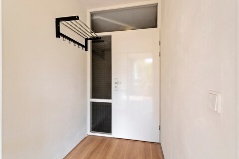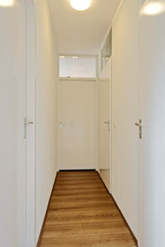 U betreedt de gang vanuit de woonkamer. In de gang bevinden bevinden een viertal deuren welke toegang bieden aan het toilet, badkamer, slaapkamer en de werkkamer.