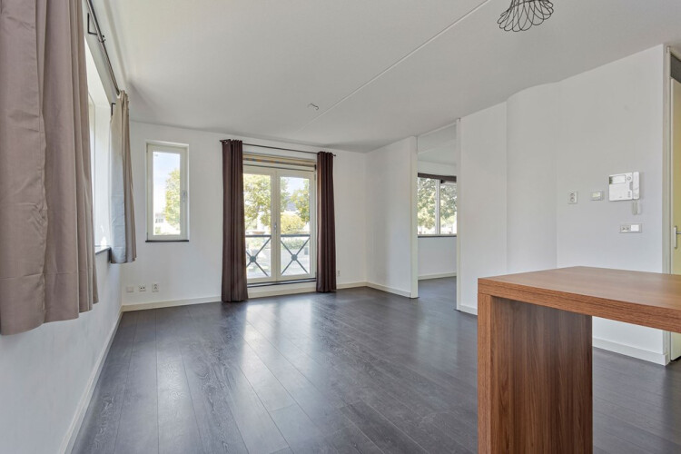 De woonkamer (ca. 30 m²) is voorzien van een laminaatvloer, een video-intercom en openslaande deuren naar Frans balkon. Vanuit de woonkamer tevens toegang tot de slaapkamer.