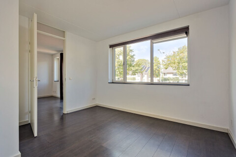 Ruime slaapkamer (ca. 12 m2) met laminaatvloer en toegang tot de badkamer.