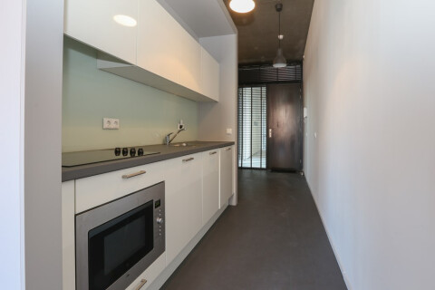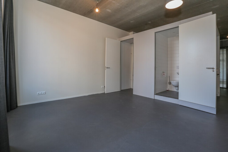 Aan de rechterzijde van het appartement is er de mogelijkheid om een kastenwand te plaatsen zodat je een mooie slaapruimte kan creeren, vanuit uit hier is toegang tot de badkamer en de bergkast/meterkast.